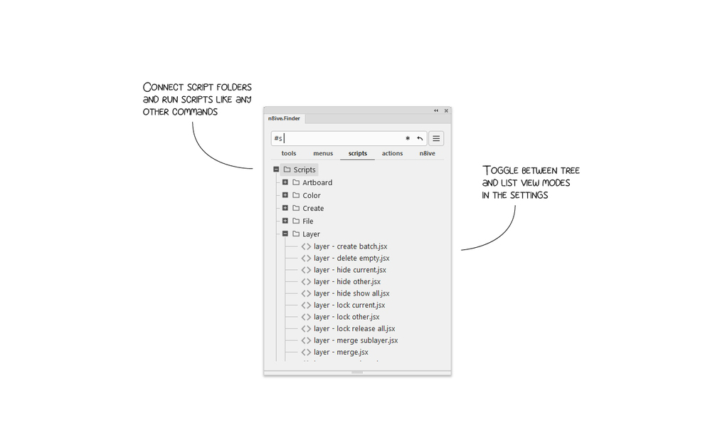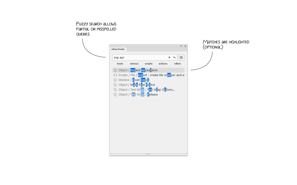 Finder is a powerful command palette plugin for Adobe Illustrator. Instantly find tools, menus, scripts or actions, create bookmarks and pin your favorite commands for quick access.